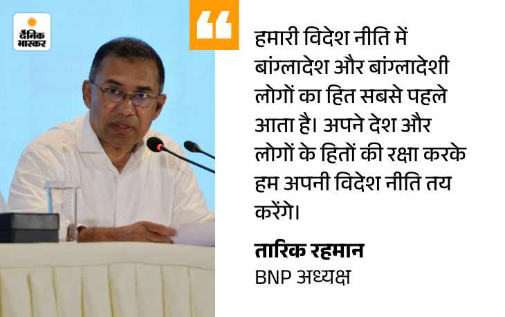 बांग्लादेश आम चुनाव में जीत के बाद बांग्लादेश नेशनलिस्ट पार्टी (BNP) अध्यक्ष तारिक रहमान ने शनिवार को पहली बार मीडिया से बात की। इस दौरान उन्होंने भारत-बांग्लादेश रिश्तों से जुड़े सवाल पर कहा कि हम बांग्लादेश के हितों को सबसे ऊपर रखेंगे।