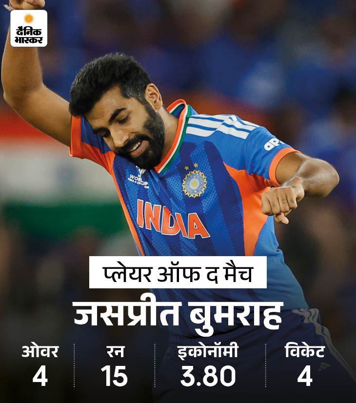 बुमराह पिछले टी-20 वर्ल्ड कप के टॉप विकेट टेकर रहे हैं। उन्होंने 14 विकेट झटके। वे अहमदाबाद में न्यूजीलैंड के खिलाफ प्लेयर ऑफ द फाइनल भी चुने गए थे।