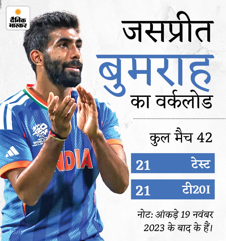 19 नवंबर 2023 को ऑस्ट्रेलिया के खिलाफ खेले गए वनडे वर्ल्ड कप फाइनल के बाद से बुमराह ने 42 इंटरनेशनल मैच खेले हैं। इनमें 21 टेस्ट और 21 टी20 इंटरनेशनल शामिल हैं।