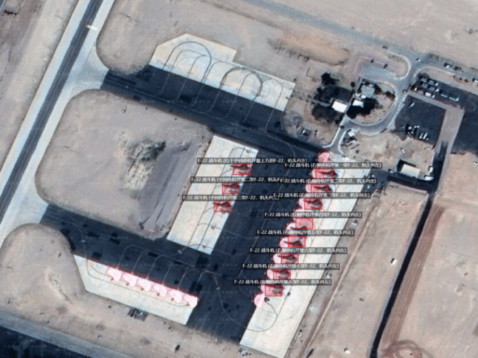 इन सैटेलाइट तस्वीरों को एक चीनी आर्टिफिशियल इंटेलिजेंस कंपनी ने ऑनलाइन साझा किया था। एक तस्वीर में इजराइल के ओवदा एयर बेस पर लॉकहीड मार्टिन के F-22 स्टेल्थ फाइटर खड़े दिखाई दे रहे थे। दूसरी तस्वीर में सऊदी अरब के प्रिंस सुल्तान एयर बेस पर विमानों और सपोर्ट सिस्टम की बढ़ती तैनाती दिखाई गई थी।