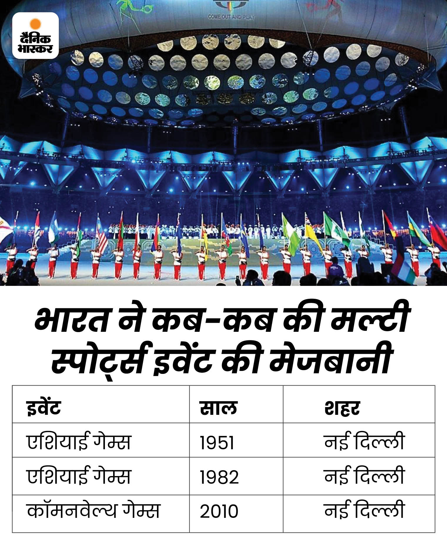 2 एशियन गेम्स भी करा चुका है भारत भारत ने इससे पहले 2010 में नई दिल्ली में कॉमनवेल्थ गेम्स आयोजित किए थे, जिन पर करीब 70,000 करोड़ रुपए खर्च हुए थे। इसके अलावा भारत 1951 और 1982 एशियाई खेलों की मेजबानी भी कर चुका है। तीनों बड़े मल्टी-स्पोर्ट्स इवेंट दिल्ली में हुए थे। अगर अहमदाबाद को 2030 की मेजबानी मिलती है, तो यह पहली बार होगा जब कोई बड़ा अंतरराष्ट्रीय मल्टी-स्पोर्ट्स इवेंट दिल्ली के बाहर आयोजित होगा।