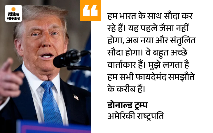 अमेरिकी राष्ट्रपति डोनाल्ड ट्रम्प ने 10 नवंबर को कहा था कि भारत और अमेरिका एक नए व्यापार समझौते को अंतिम रूप देने के करीब पहुंच गए हैं। उन्होंने कहा कि अमेरिका भारत पर लगे टैरिफ को धीरे-धीरे कम करेगा।