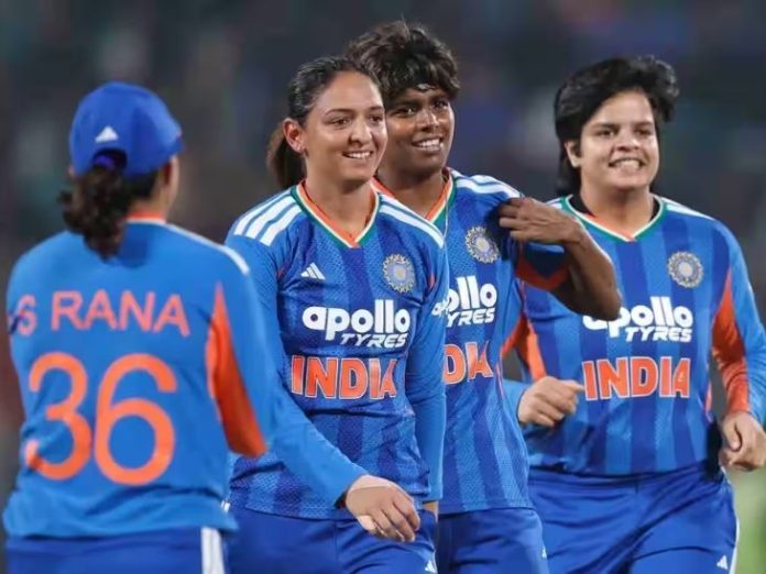 विकेट की खुशी मनातीं भारत की प्लेयर्स।