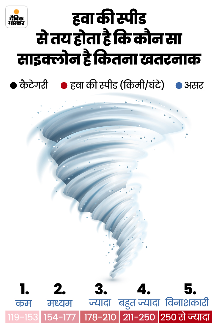 कैटेगरी 5 के तूफान को हरिकेन की सबसे खतरनाक श्रेणी माना जाता है। इसमें हवाओं की रफ्तार 252 किलोमीटर प्रति घंटा (या 157 मील प्रति घंटा) से ज्यादा होती है।