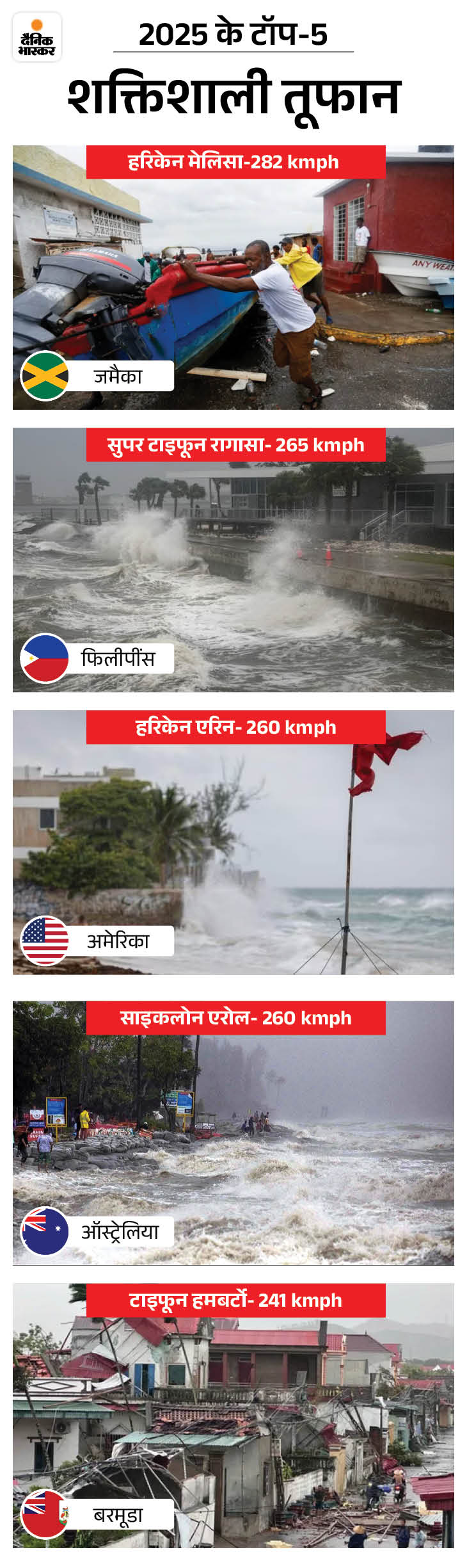 अमेरिका के नेशनल हरिकेन सेंटर (NHC) ने बताया है कि तेज हवाओं और लो प्रेशर के चलते मेलिसा इस साल दुनिया का सबसे ताकतवर तूफान बन चुका है।