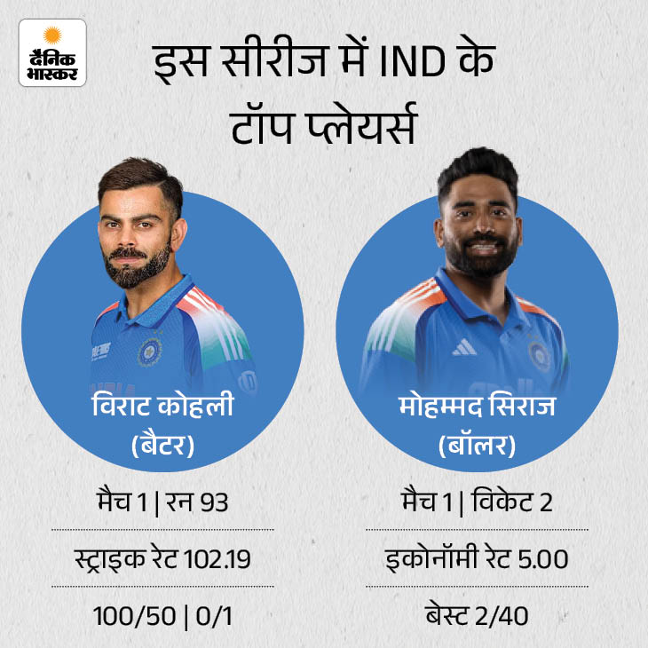 विराट ने पहले मैच में 93 रन बनाए पहले मैच में विराट कोहली ने शतक तो नहीं लगाया लेकिन 93 रन की पारी खेली। कोहली सीरीज में टॉप स्कोरर हैं। कोहली पिछले साल भी टीम के लिए सबसे ज्यादा 651 रन बनाने वाले खिलाड़ी थे। वहीं, पहले मैच में मोहम्मद सिराज ने गेंदबाजी में अच्छा प्रदर्शन किया और 2 विकेट लिए।