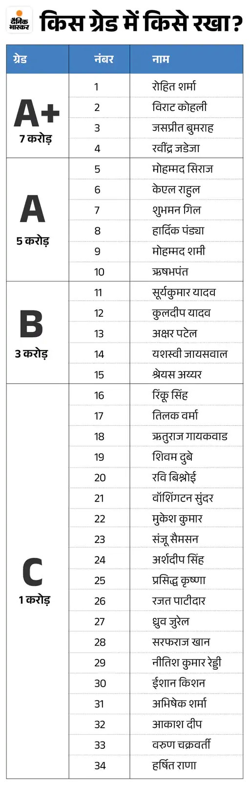 2024-25 में जडेजा-बुमराह भी ग्रेड A में थे