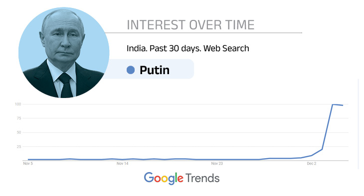 रूसी राष्ट्रपति पुतिन भारत दौरे को लेकर गूगल पर ट्रेंड कर रहे हैं…