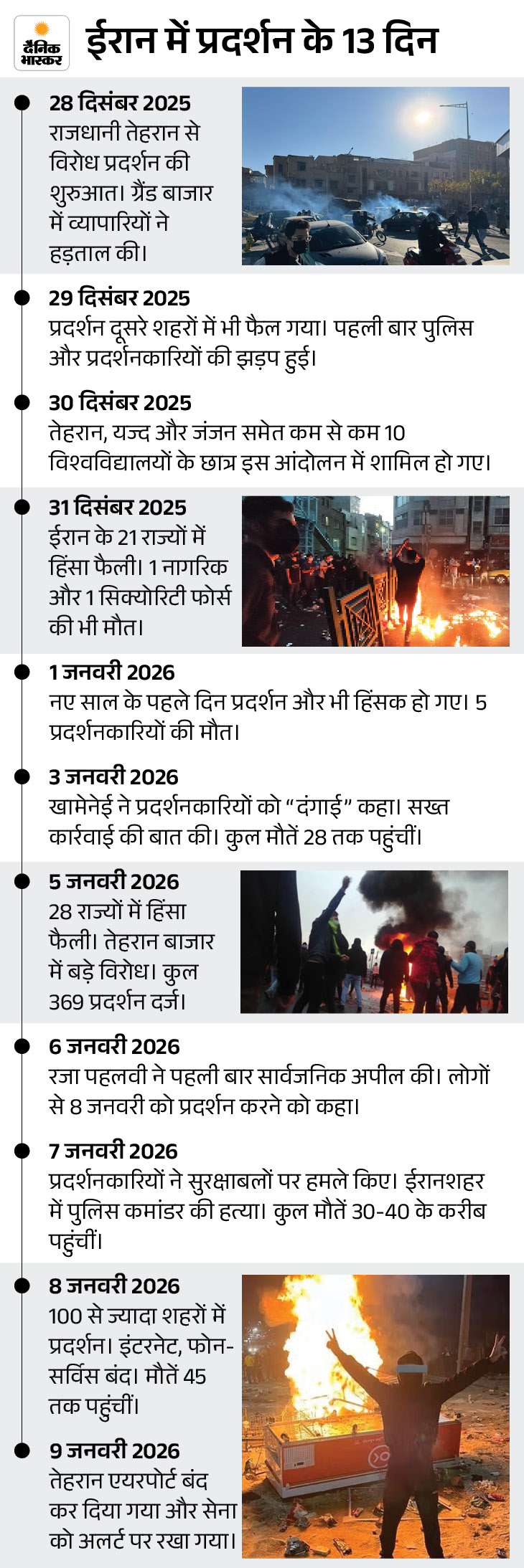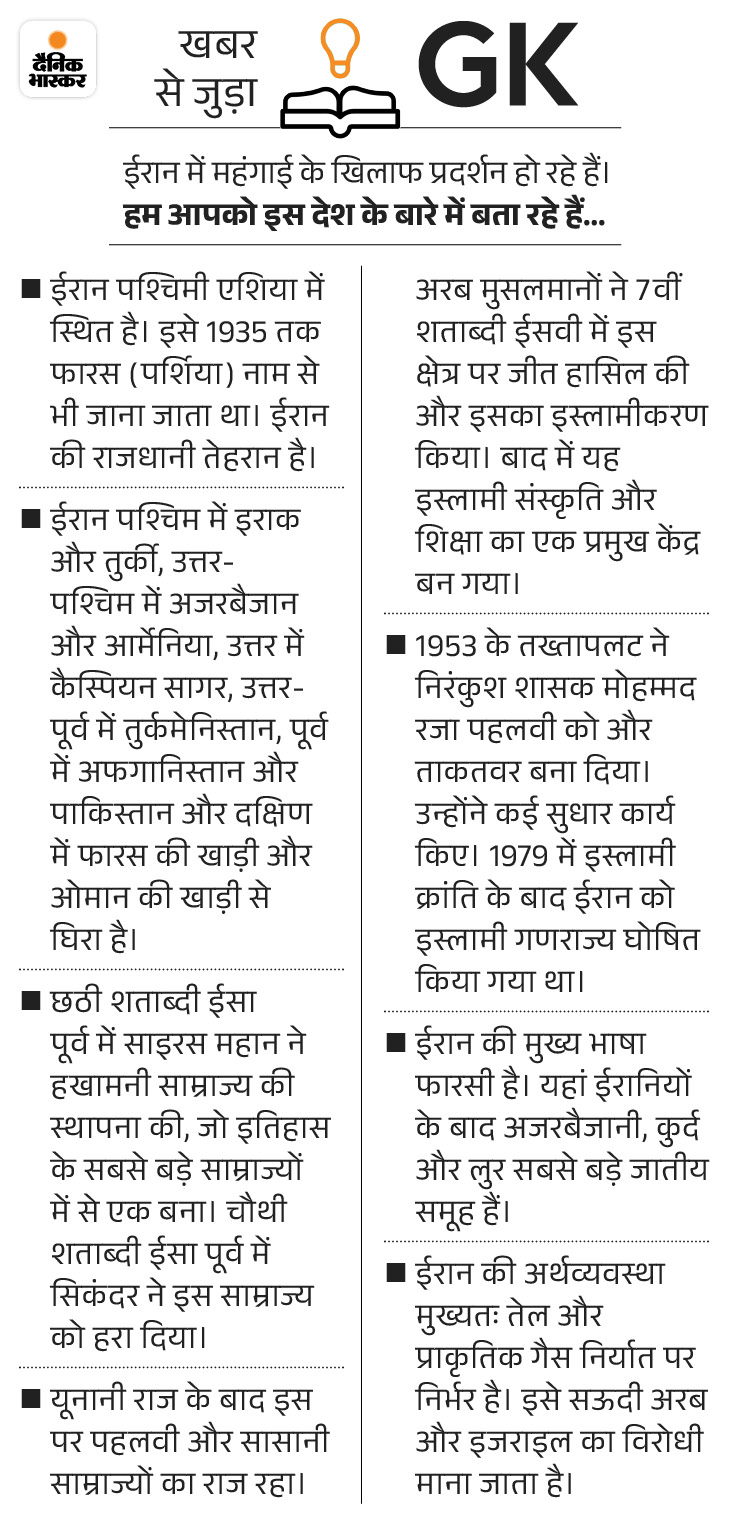 इससे पहले सरकार ने देशभर में इंटरनेट और फोन सर्विस लगभग बंद कर दी। अमेरिका के राष्ट्रपति डोनाल्ड ट्रम्प ने भी चेतावनी दी थी कि अगर प्रदर्शनकारियों को मारा गया तो ईरानी सरकार को इसकी भारी कीमत चुकानी पड़ेगी।