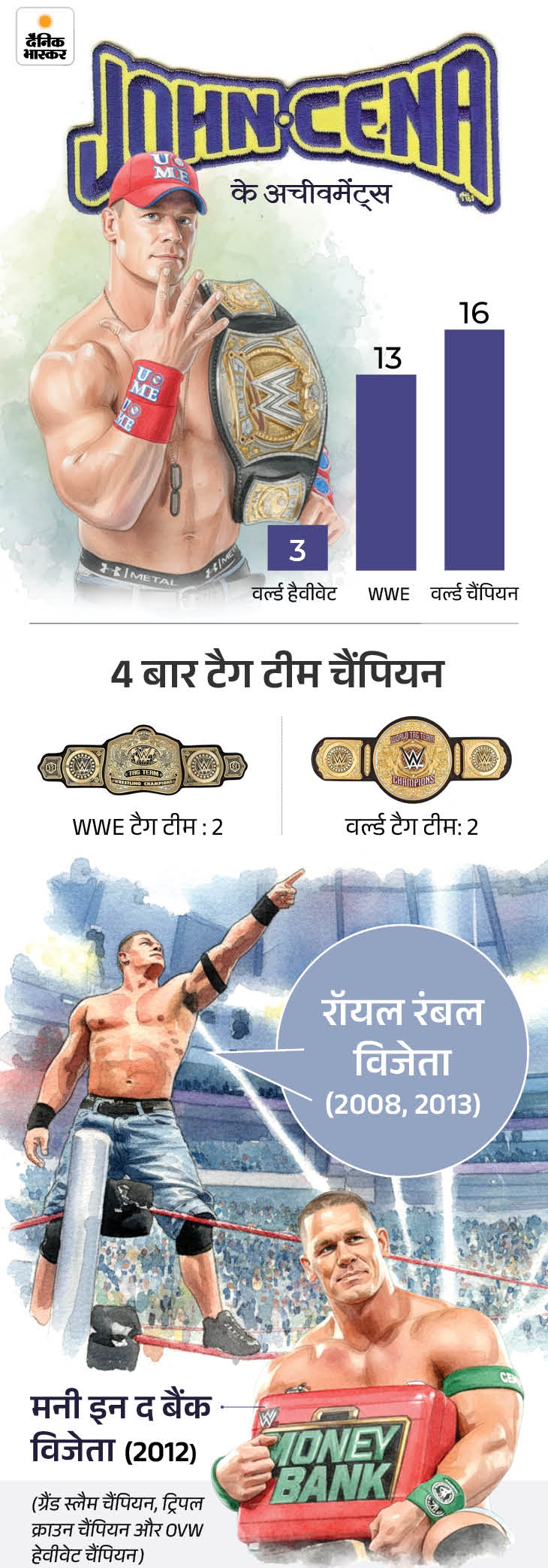 48 साल के जॉन सीना ने पिछले साल ‘मनी इन द बैंक’ इवेंट में कह दिया था कि वे 2025 के अंत तक वे रेसलिंग रिंग को अलविदा कह देंगे। जनवरी से उनका रिटायरमेंट टूर शुरू हुआ।