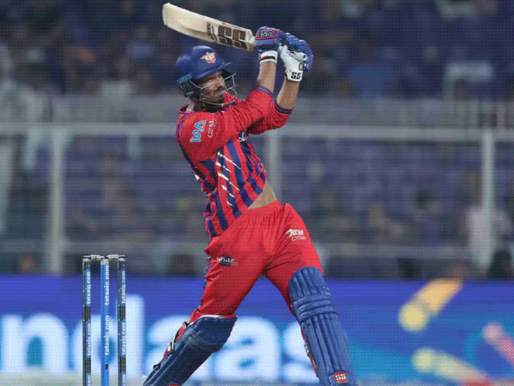 10वें ओवर में दिग्वेश सिंह राठी ने अजिंक्य रहाणे को आउट किया। ऑफ स्टंप के बाहर शॉर्ट गेंद पर रहाणे ने लेग साइड में शॉट खेलने की कोशिश की, लेकिन शॉट टाइम नहीं हुआ और गेंद मिडविकेट की ओर गई।