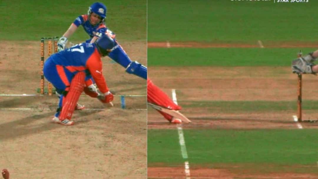यह मामला दिल्ली कैपिटल्स की पारी के 11वें ओवर का है, जिसमें MI की ओर से अमनजोत कौर गेंदबाजी कर रही थीं. तीसरी गेंद वाइड रही, जिसे लिजेल ली ने आगे बढ़कर लेग साइड में टहलाने की कोशिश की. मगर गेंद उनसे मिस हो गई और विकेटकीपर राहिला फिरदौस ने गिल्लियां बिखेर दीं.