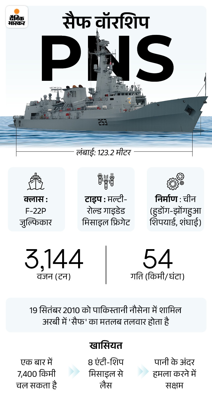 PNS सैफ को चीन ने 2010 में पाकिस्तान को बेचा था। यह वही फ्रिगेट क्लास का जहाज है जिसमें PNS शामशीर और PNS आसलत भी शामिल हैं। रिपोर्ट्स में कहा गया है कि इन दोनों जहाजों में भी इसी तरह की तकनीकी समस्याएं सामने आई हैं।