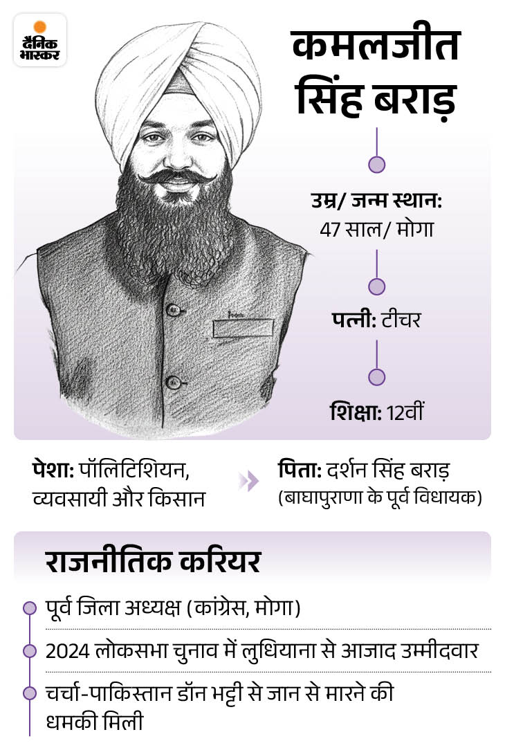 - मैं झुका नहीं इसलिए सरकारें भी धमकी दिला सकतीं: कमलजीत सिंह बराड़ ने आरोप लगाया कि उसने धमकी भरी कॉल की शिकायत थाना बाघापुराना में की थी। 10 दिन हो गए, पुलिस कॉल करने वाले का पता तक नहीं लगा पाई। कॉल करने वाले ने मुझे कहा कि था आपका जिन राजनेताओं के साथ मसला चल रहा है उसे निपटा लो। मैंने तो उससे पूछा था कि उस राजनेता का नाम बताओ। मेरी को किसी के साथ पर्सनल लड़ाई नहीं है। मेरी लड़ाई विचारों की है। मैं कांग्रेस में था तो वहां भी पार्टी के अंदर पंजाब के पंथक विचारों की लड़ाई थी। उनको ठीक नहीं लगी तो मैंने पार्टी छोड़ दी। लुधियाना का लोकसभा चुनाव तो मैंने राजा वड़िंग और रवनीत बिट्टू के खिलाफ ही लड़ा है। दोनों के साथ भी कोई लड़ाई नहीं है। पुलिस ने जिस तरह से धमकी भरी कॉल पर कार्रवाई नहीं कर रही, उससे सरकारों पर भी शक जाता है। कई बार मुझे कई लोगों ने पार्टी जॉइन करने के लिए कहा है, पर मैंने बात नहीं मानी।