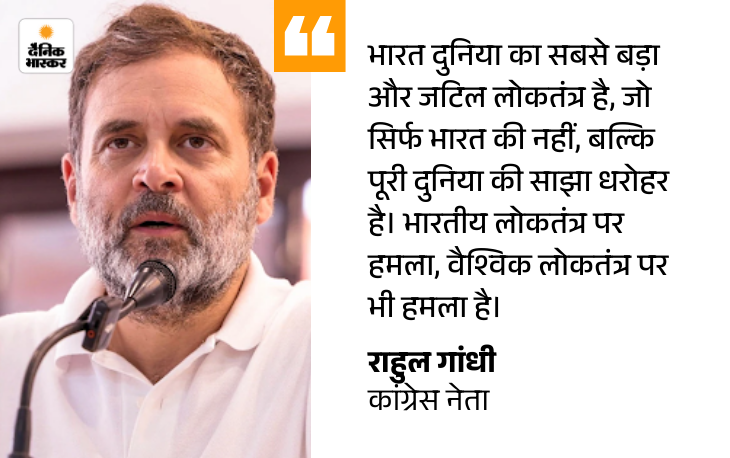 राहुल ने कहा- लोकतांत्रिक संस्थाएं स्वतंत्र रूप से काम नहीं कर पा रही हैं। CBI और ED जैसी एजेंसियों का राजनीतिक हथियार के रूप में इस्तेमाल किया जा रहा है। हम सिर्फ बीजेपी से नहीं लड़ रहे, हम उनके भारतीय संस्थागत ढांचे और एजेंसियों पर कब्जे के खिलाफ भी लड़ रहे हैं।