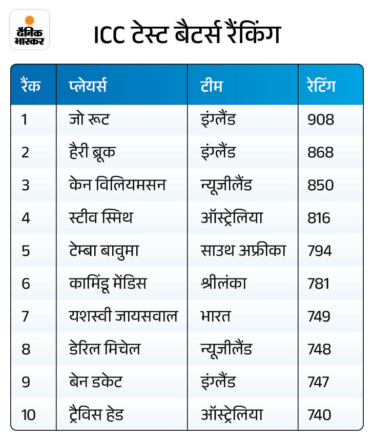 इसी सूची में पाकिस्तान के हारिस रऊफ पांच स्थान बढ़कर 23वें, वेस्टइंडीज के जेडेन सील्स तीन स्थान बढ़कर 20वें और रोस्टन चेज 12 स्थान ऊपर चढ़कर 46वें स्थान पर पहुंच गए हैं।
