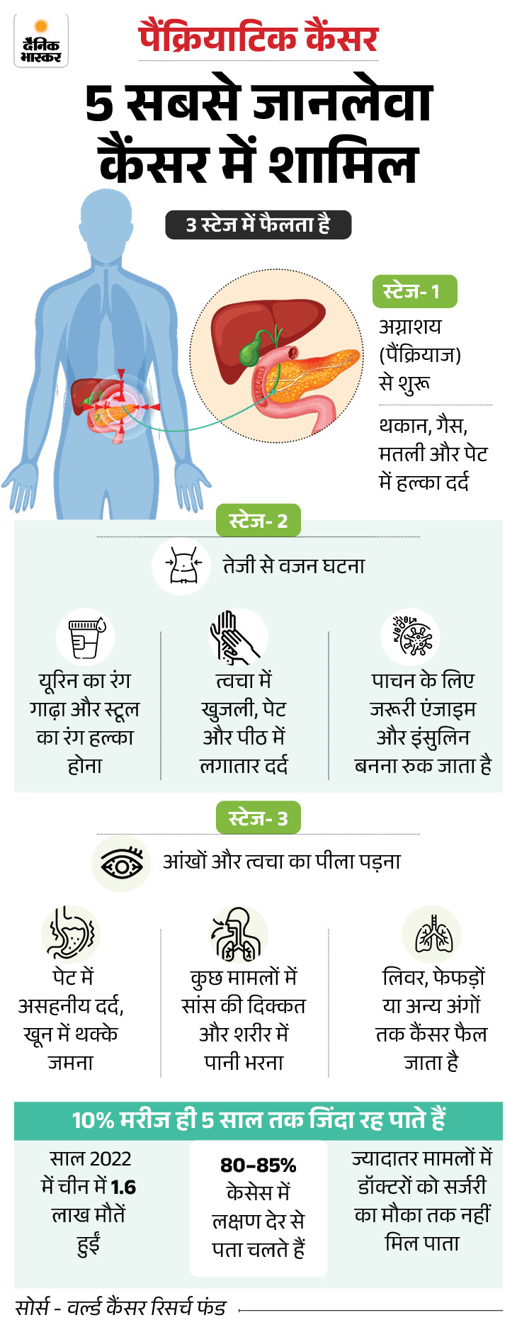 पैंक्रियाटिक कैंसर को सबसे खतरनाक कैंसरों में माना जाता है, क्योंकि इसके लक्षण बहुत देर से सामने आते हैं। ज्यादातर मामलों में बीमारी तब पकड़ में आती है, जब वह काफी बढ़ चुकी होती है। इसी वजह से इसके सिर्फ 10% मरीज ही 5 साल तक जिंदा रह पाते हैं। एपल के CEO स्टीव जॉब्स की 2011 में इसी से मौत हुई थी।