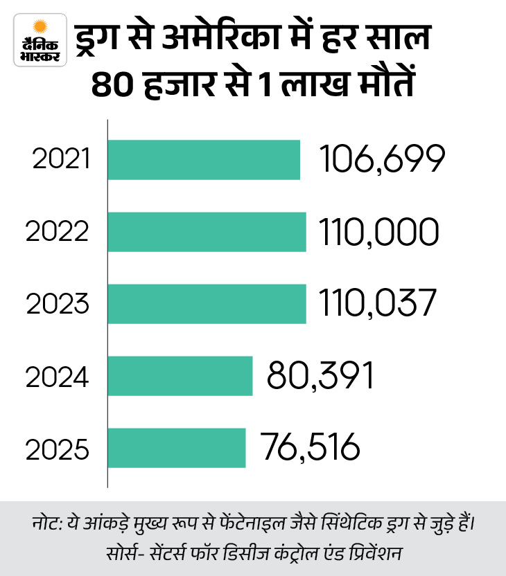 अमेरिका दुनिया का सबसे बड़ा ड्रग मार्केट है। हर साल लाखों लोग नशे की लत के शिकार होते हैं और फेंटेनाइल जैसी दवाओं से हजारों मौतें होती हैं। अमेरिकी सरकार पर लगातार दबाव रहता है कि ड्रग तस्करी पर सख्त कदम उठाए जाएं और इसी वजह से उसकी नजर मेक्सिको में मौजूद कार्टेल्स पर रहती है।