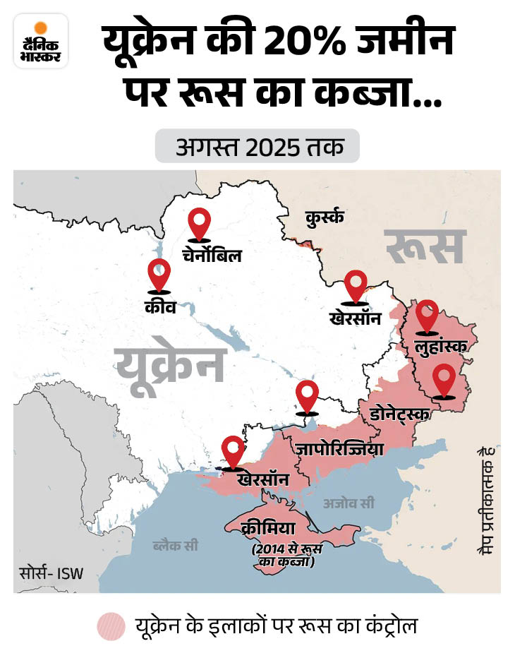 ट्रम्प प्रशासन ने बैठक के बाद एक 28 पॉइंट का प्लान तैयार किया है। इसके मुताबिक यूक्रेन को अपना लगभग 20% हिस्सा रूस को देना होगा। इसमें पूर्वी यूक्रेन का डोनबास का इलाका शामिल है। यूक्रेन मात्र 6 लाख जवानों वाली सेना ही रख सकेगा।