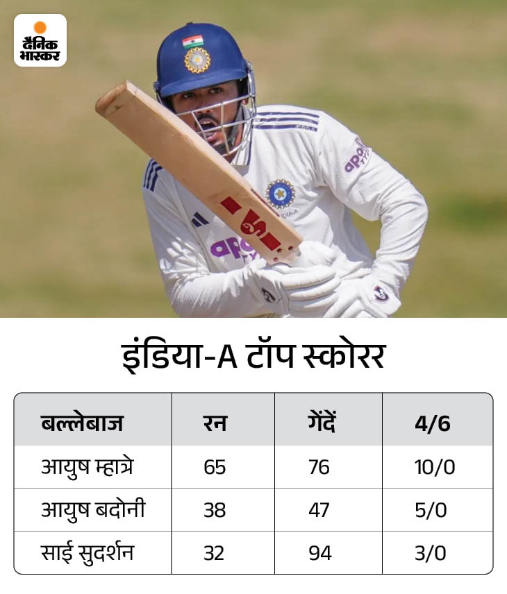 पहले दिन इंडिया-A के ओपनर्स ने मजबूत शुरुआत दी थी। वहीं दूसरे दिन साउथ अफ्रीका-A के स्पिनर प्रनेलन सब्रायन ने 5 विकेट लेकर मैच पलट दिया। इंडिया-A 90/0 के स्कोर से 234 रन पर सिमट गई। भारत से आयुष म्हात्रे ने सबसे ज्यादा 65 रन बनाए। कप्तान ऋषभ पंत 17 रन ही बना सके।