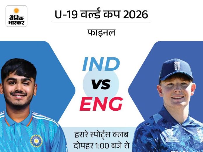 अंडर-19 वर्ल्ड कप फाइनल में आज 5 बार की चैंपियन भारत के सामने इंग्लैंड की चुनौती होगी। खिताबी मुकाबला हरारे स्पोर्ट्स क्लब में दोपहर 1 बजे से शुरू होगा, जबकि टॉस 12:30 बजे किया जाएगा।