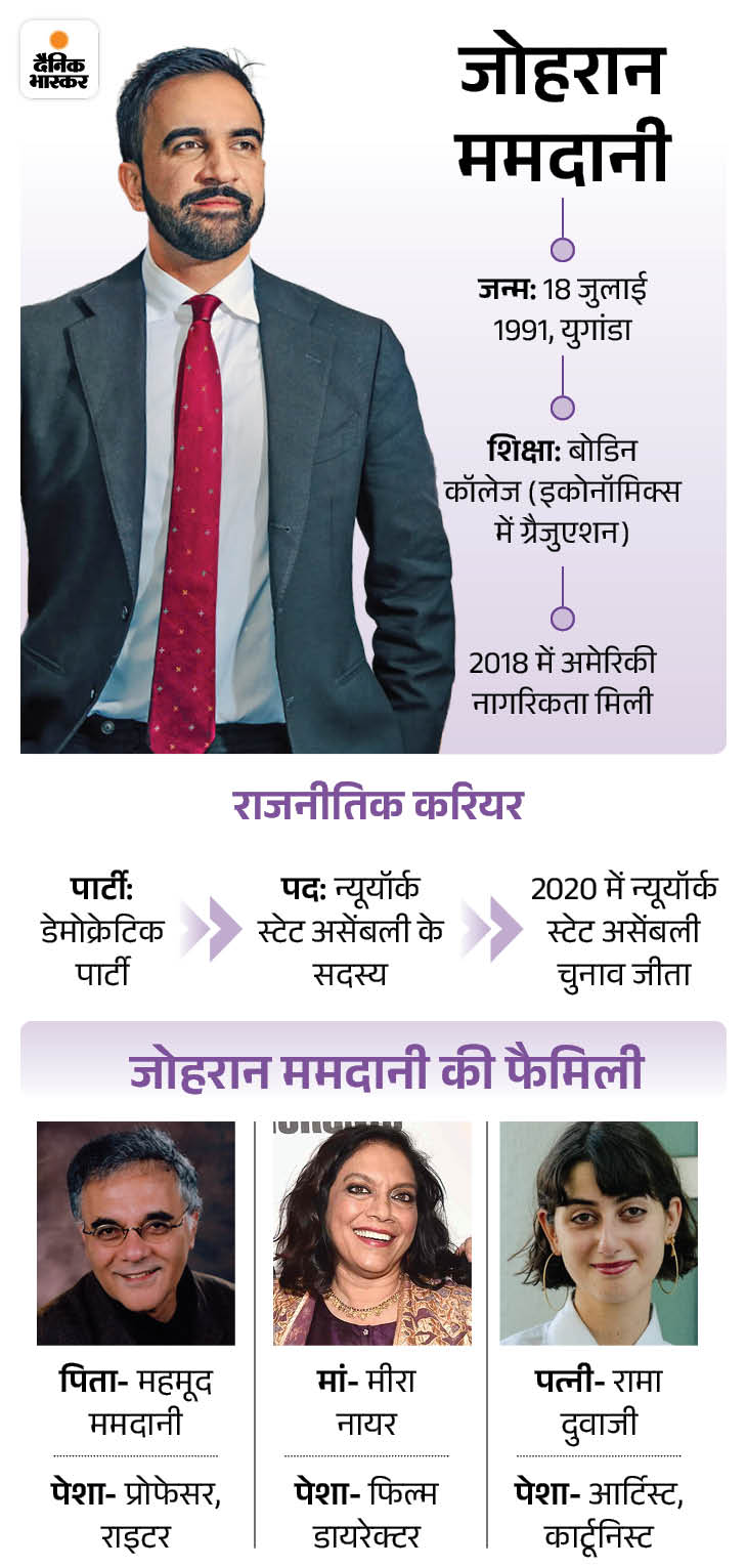 ममदानी पिछले 100 सालों में न्यूयॉर्क के सबसे युवा, पहले भारतवंशी और पहले मुस्लिम मेयर हैं। ममदानी मानसून वेडिंग और सलाम बॉम्बे जैसी फिल्में डायरेक्ट करने वाली भारतीय मूल की मीरा नायर के बेटे हैं।