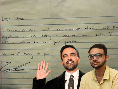 न्यूयॉर्क शहर के मेयर जोहरान ममदानी ने तिहाड़ जेल में बंद छात्र एक्टिविस्ट उमर खालिद को हाथ से लिखी एक चिट्ठी भेजी है। जेएनयू के पूर्व छात्र पर UAPA कानून के तहत मामला चल रहा है।